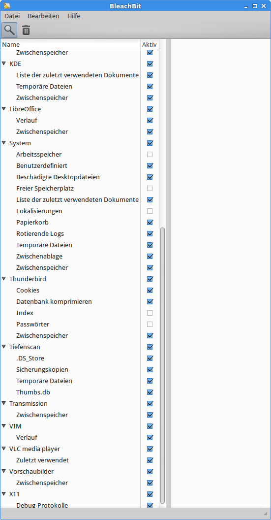 Leider kann ich nur mittelbar helfen. Meine Empfehlung mit "bleachbit" das ganze System schneller machen, siehe Anhang. Vorsicht, Passwörter, Lokalisierungen, Arbeitsspeicher usw. müssen ausgenommen werden. Zusätzlich verwaiste Pakete von Deinstallationen löschen mit zB gtkdorphan. Bei Windows zusät...