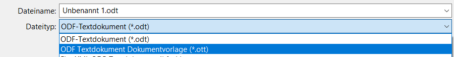 ODF Textdokument Dokumentenvorlage (*.ott) speicherst.
